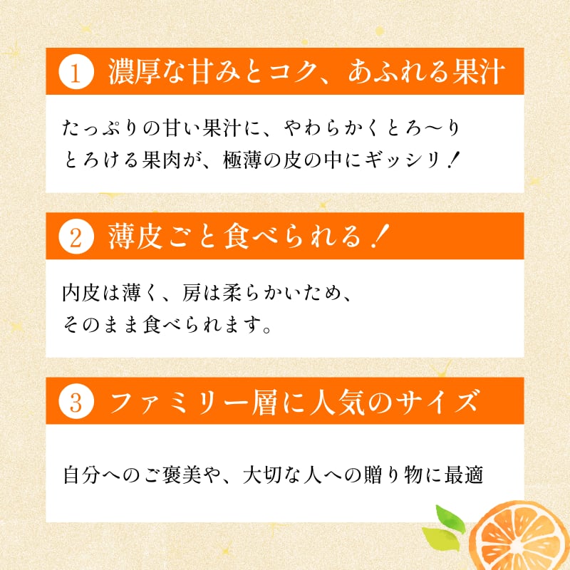 とろけるような食感で「柑橘の大トロ」ともよばれるのが特徴です。